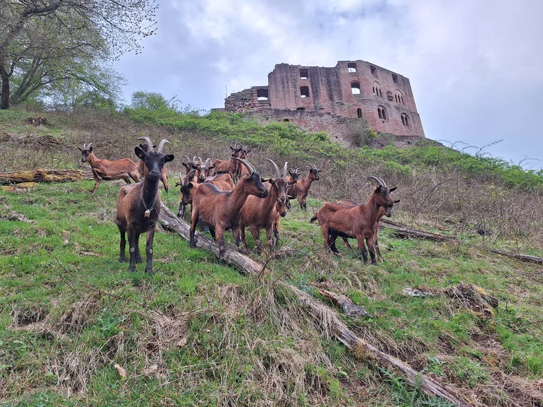 Unsere Ziegenherde wird in der Landschaftspflege eingesetzt. Dh die Ziegen befinden sich über Frühling, Sommer und Herbst auf den Weiden rund um unser Heimatdorf Hochspeyer. Im Winter verbleiben die Ziegen am Stall.
