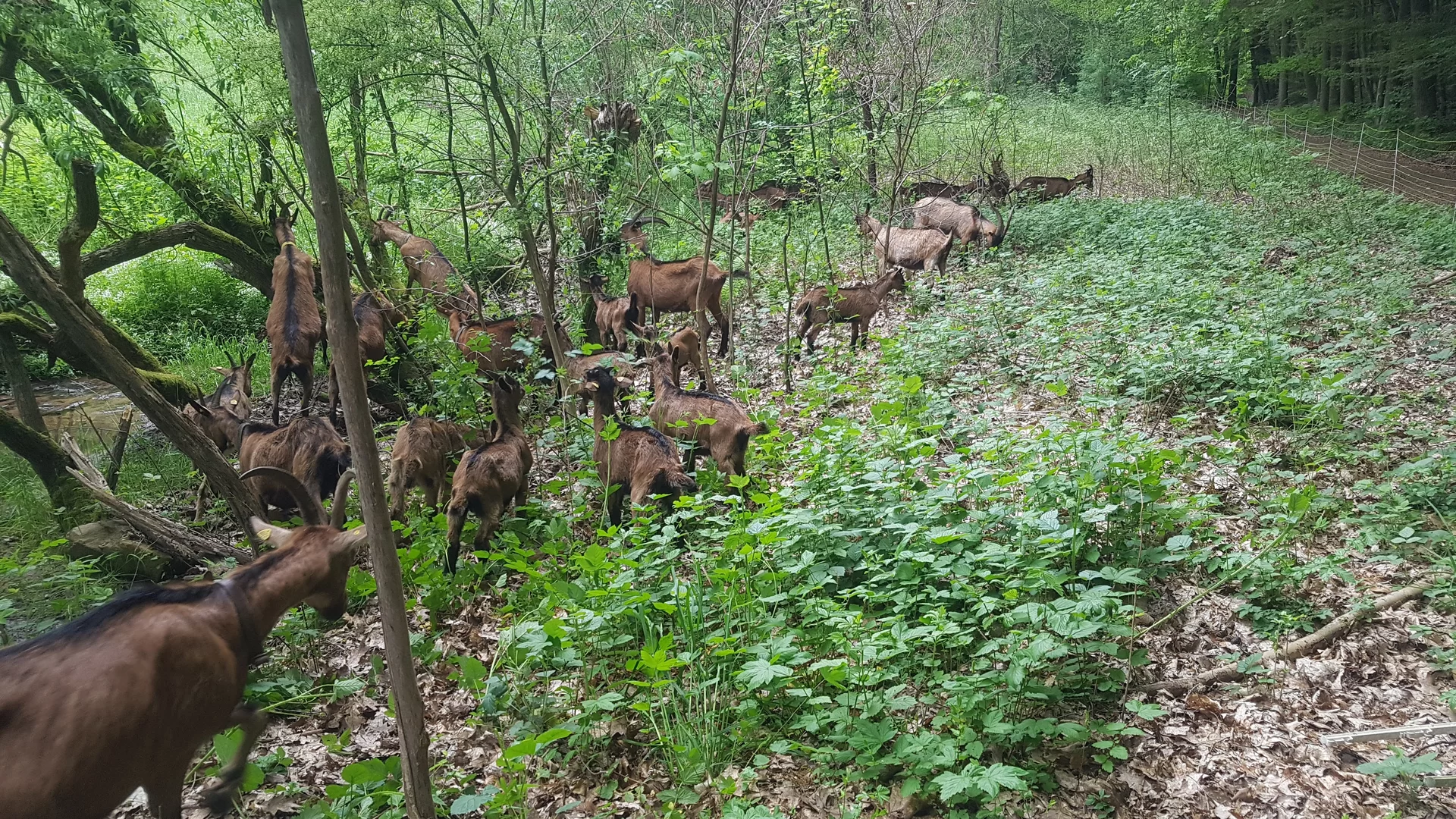 Unsere Ziegenherde wird in der Landschaftspflege eingesetzt. Dh die Ziegen befinden sich über Frühling, Sommer und Herbst auf den Weiden rund um unser Heimatdorf Hochspeyer. Im Winter verbleiben die Ziegen am Stall.